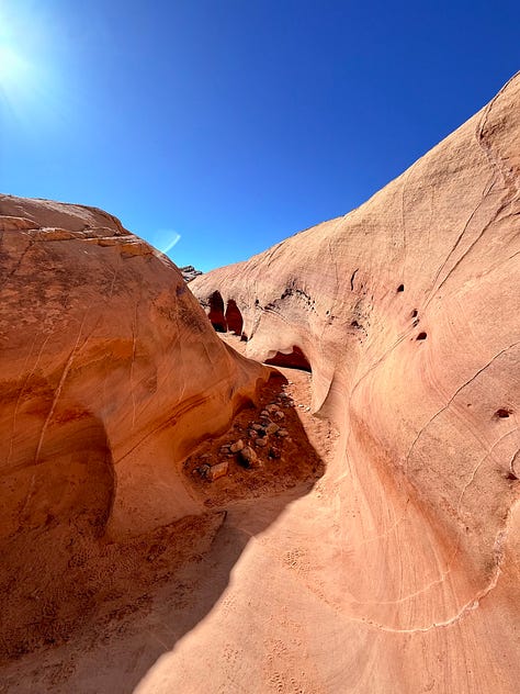 To mitigate all of this, rather than sleep at any ol’ dispersed camping spot on public lands, I chose to stay at developed campgrounds (one a state campground, the other a national campground) that required reservations and a fee, offered a few services and, in one case had a campground host, and the second, a guard station to enter the park. The first one required a 10-hour (yup, draining) drive, but it put me most of the way to the my destination and in the southern, more populous part of the state, which for some reason, feels less creepy. In both cases, I landed at truly beautiful, peaceful—and safe—spots to breathe, hike, sleep, and even write. I mean look at these places.